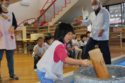 もちつき(2013/12/12) もち米を蒸す様子や、おもちになっていく過程を見たり、また交替でおもちをついたり、丸めたりしてみんなで楽しみました。 つきたてのお餅で作ってもらった“きなこもち”はとてもおいしかったです。 お父さん、お母さん、おじいちゃん、おばあちゃんたくさんの方に手伝っていただき、楽しい餅つきができました。 ツイート