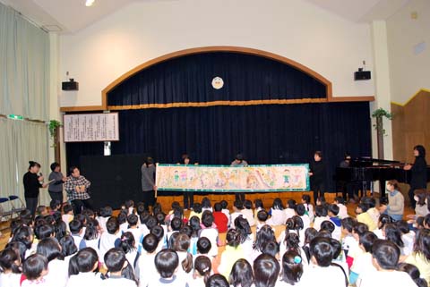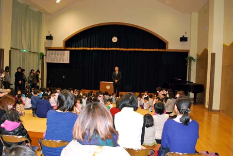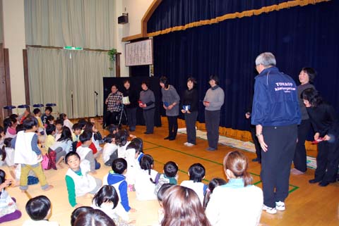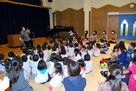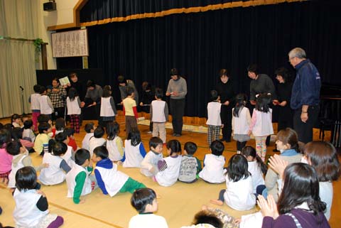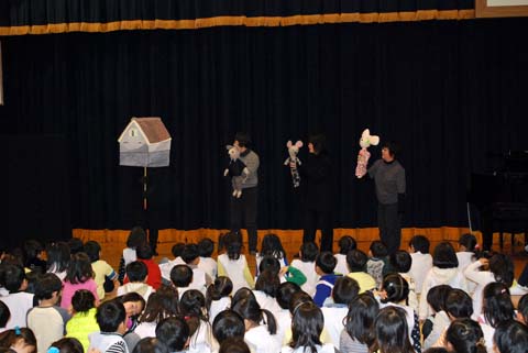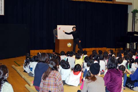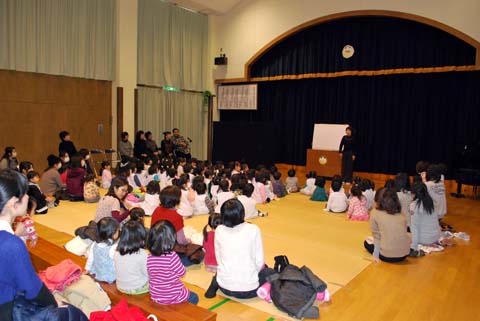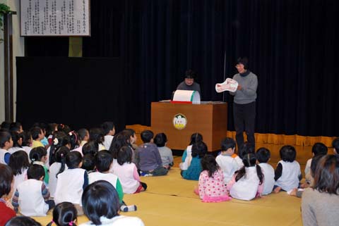 お話し会(2014/01/22) 毎年恒例の朗読グループ「火曜の会」の皆様に来ていただきました。 パネルシアターを観たり一緒に手話で歌を歌ったりして楽しみました。 年長・年中組のみんなは、別メニューで「ねずみの嫁入り」の人形劇も観て楽しみました。 ツイート