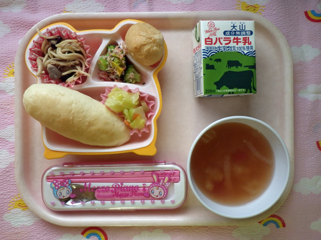つるつるスパ♪今日は和風で☆(2014/02/14) ★ パン ★●きのこ和風スパゲティ ★◆●ポトフ ◆●ブロッコリーサラダ ★ シュークリーム ※あたたかいご飯はおかわり自由です。 ※牛乳は希望者のみです。 ★熱や力になるもの ◆血や肉になるもの ●体の調子を整えるもの ツイート