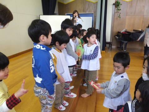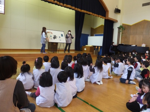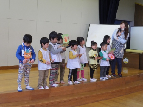 2月の誕生会は、みんなで一緒に歌を歌ったり、パネルシアターを観たりして楽しみましたよ。