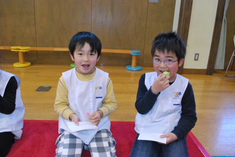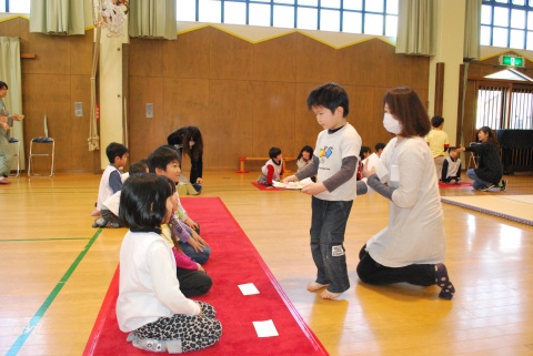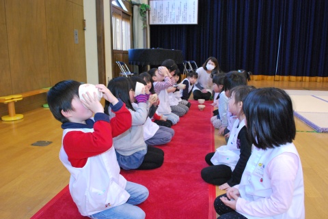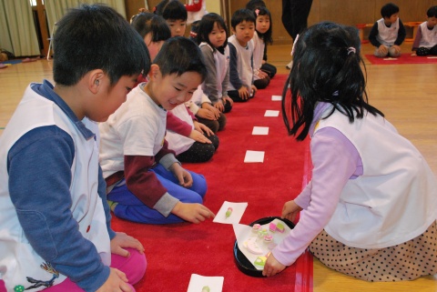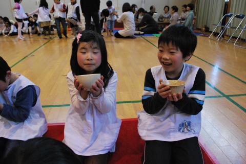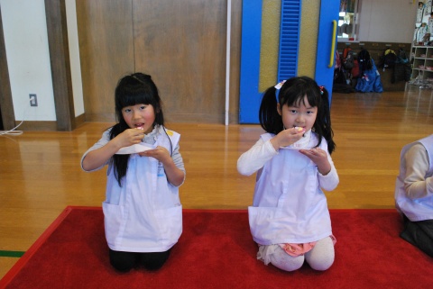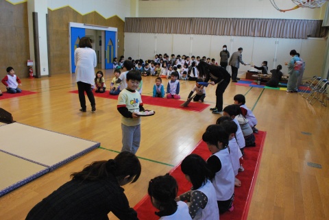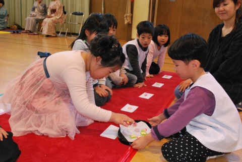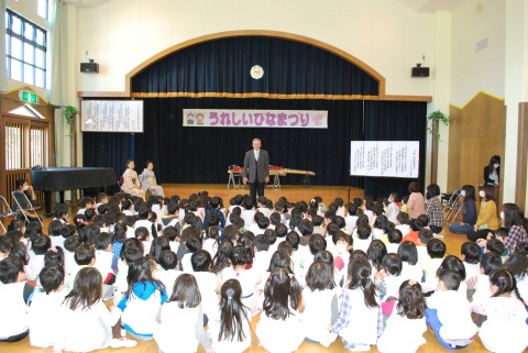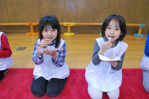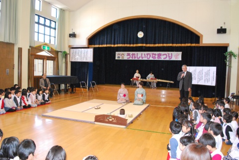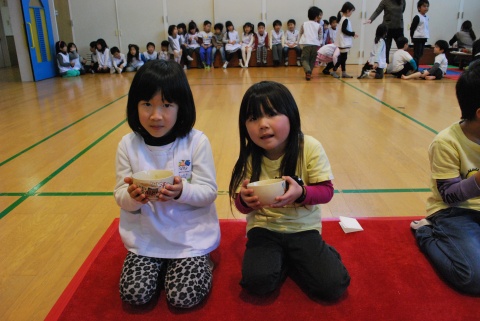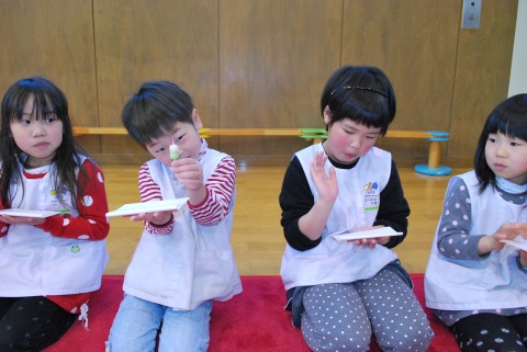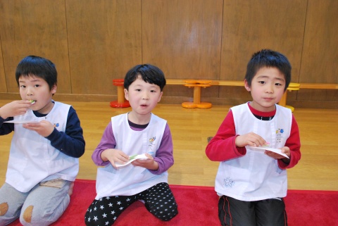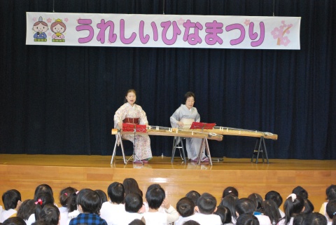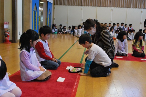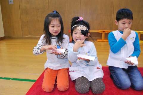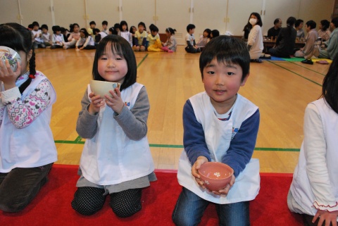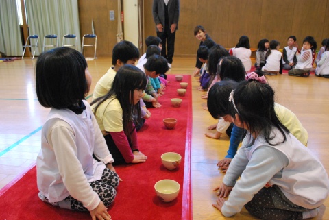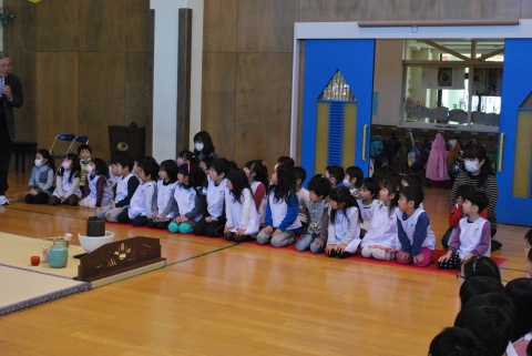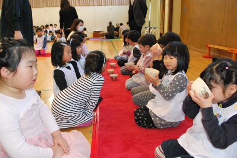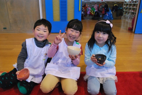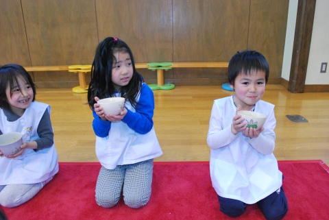 ひな祭りお茶会(2014/03/03) 椿社中さんによる事の演奏を聴いたり、演奏に合わせて「うれしいひなまつり」を歌ったりしました。 また、曲の間には琴という楽器についての話も聴きました。 その後は、各学年に分かれてひな祭り会をしました。年長組・年中組は琴の演奏をBGMに最上先生のお点前を観て勉強をしたり、年長組は実際にお茶を飲んだりしましたよ。 ツイート