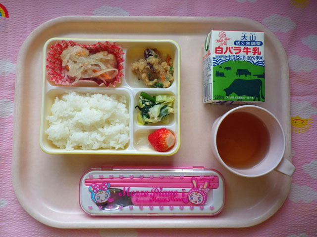 さっぱり甘酸っぱい南蛮漬け☆(2014/03/10) ★ ごはん ◆●アジの南蛮漬け ◆●卯の花 ★●ピーナッツ和え ● いちご ※あたたかいご飯はおかわり自由です。 ※牛乳は希望者のみです。 ★熱や力になるもの ◆血や肉になるもの ●体の調子を整えるもの ツイート