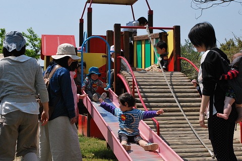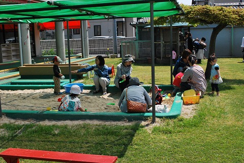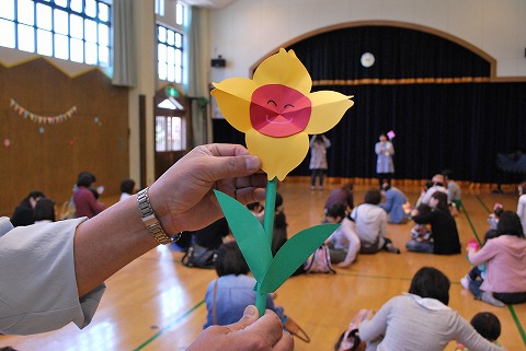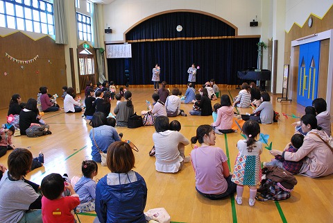 ちびっこひろば 幼稚園であそびましょう!2014/04/23 平成26年度初めてのちびっこひろばが、今日行われました。 朝からいいお天気に恵まれ、たくさんの親子のみなさんが来てくださいました。 緑の芝生の園庭ですべり台をしたり、砂場をしたり、思い思いに遊ばれていました。 遊戯室でのわくわくタイムでは、みんなでお花を持って、「お花がわらった」「ちょうちょう」などを 歌いました。 4月生まれのお誕生会もあり、みんなでお祝いしました。 ツイート