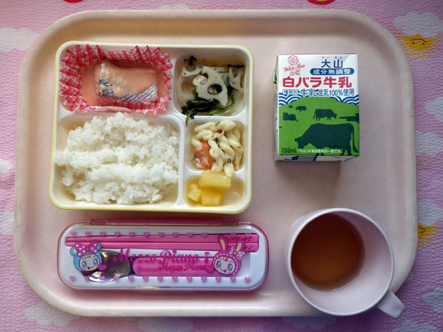 相性抜群!鮭とオーロラソース(2014/05/07) ★ ごはん ◆ 鮭のオーロラソース ◆●根菜のコンソメ煮 ★◆●マカロニサラダ ★ パイン缶 ※あたたかいご飯はおかわり自由です。 ※牛乳は希望者のみです。 ★熱や力になるもの ◆血や肉になるもの ●体の調子を整えるもの ツイート