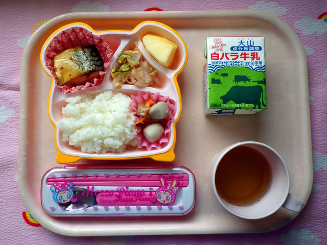 さっぱりシャキッと梅サラダ☆(2014/05/12) ★ ごはん ◆ サバの照り焼き ★◆●里芋のそぼろ煮 ● 大根梅サラダ ● りんご ※あたたかいご飯はおかわり自由です。 ※牛乳は希望者のみです。 ★熱や力になるもの ◆血や肉になるもの ●体の調子を整えるもの ツイート