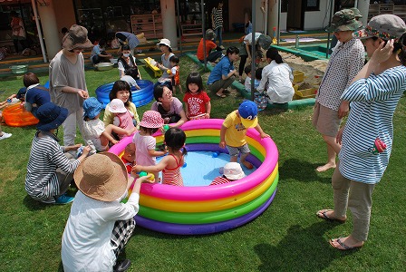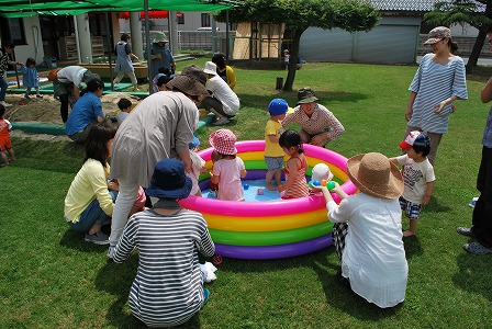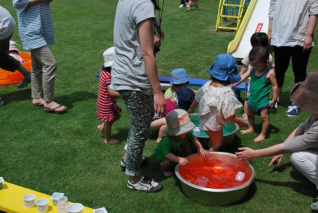 足をつけたり、手でバチャバチャしたり、水遊びが楽しめました。