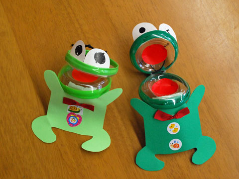 たくさん遊んだあと、カエルのカスタネットを鳴らしながら、みんなで「かえるの合唱」などを歌いました。