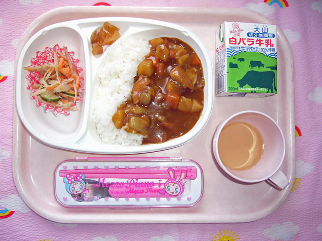 暑さも吹っ飛ぶおいしいカレー(2014/06/13) ★ ごはん ★◆●チキンカレー ● ごぼうサラダ ● 福神漬け ※あたたかいご飯とカレーはおかわり自由です。 ※牛乳は希望者のみです。 ★熱や力になるもの ◆血や肉になるもの ●体の調子を整えるもの ツイート