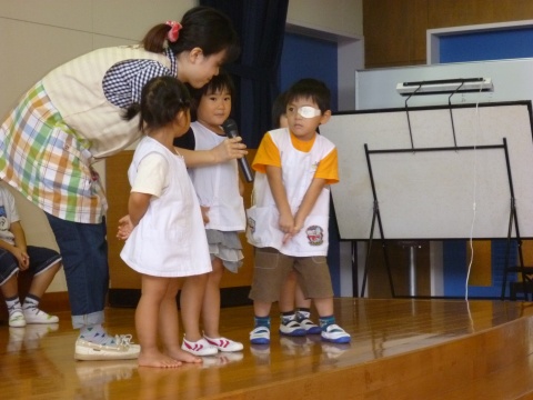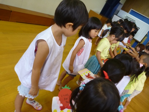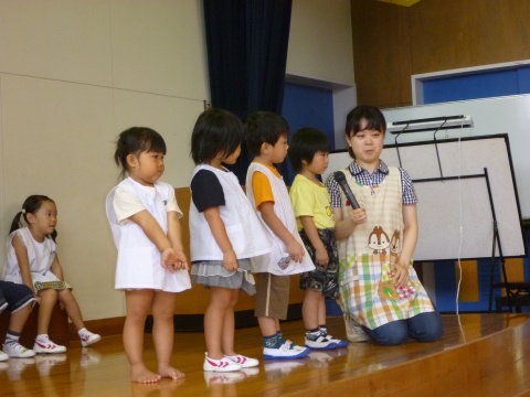 今月の誕生会は、みんなでパネルシアターを観たり歌をうたったりして楽しみましたよ。