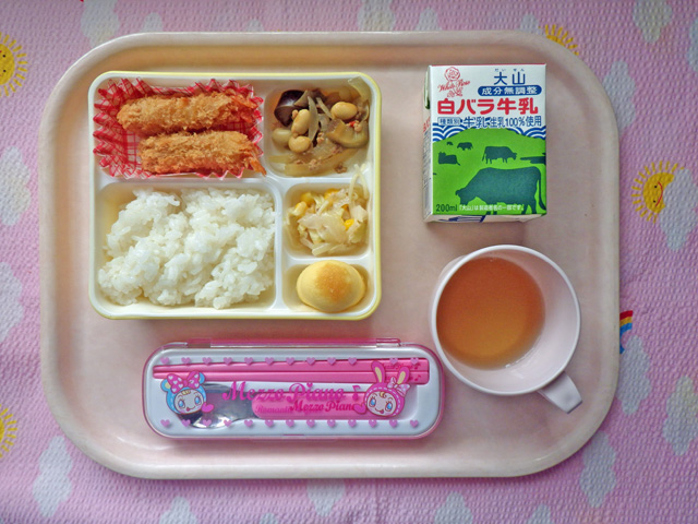 大好き★エビフライの登場だ!!(2014/09/12) ★ ごはん ◆ エビフライ ◆●ひき肉と野菜のカレー炒め ★●トマトサラダ ★ ホットケーキ ※あたたかいご飯はおかわり自由です。 ※牛乳は希望者のみです。 ★熱や力になるもの ◆血や肉になるもの ●体の調子を整えるもの ツイート