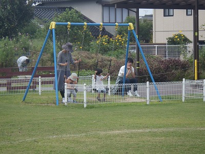 園庭では、砂場遊び、ブランコや滑り台などの遊具をしたり、芝生を走り回ったり、気持ちよくのびのびと遊べましたよ!