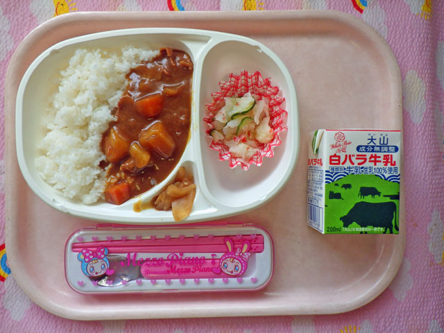おいしさギュウ♪牛肉のカレー(2014/09/24) ★ ごはん ★◆●ビーフカレー ● フレンチサラダ ● 福神漬け ※あたたかいご飯はおかわり自由です。 ※牛乳は希望者のみです。 ★熱や力になるもの ◆血や肉になるもの ●体の調子を整えるもの ツイート