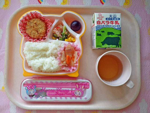 じゃこがいっぱい☆コロッケ(2014/10/03) ★ ごはん ◆ じゃこコロッケ ◆●大根とベーコンのソテー ◆●ブロッコリーサラダ ● ぶどう ※あたたかいご飯はおかわり自由です。 ※牛乳は希望者のみです。 ★熱や力になるもの ◆血や肉になるもの ●体の調子を整えるもの ツイート