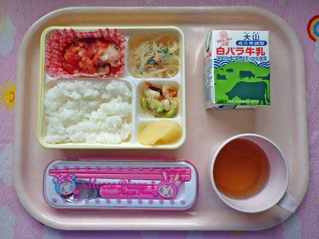 チキンとトマト★相性抜群!!(2014/10/31) ★ ごはん ◆ チキントマトソース ● 春雨炒め ★●ビーンズサラダ ★ 洋ナシ缶 ※あたたかいご飯はおかわり自由です。 ※牛乳は希望者のみです。 ★熱や力になるもの ◆血や肉になるもの ●体の調子を整えるもの ツイート