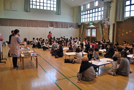 終了後、蒸かしイモ(幼稚園で採れたお芋です。)をおみやげに持って帰っていただきました。