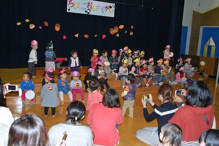 ステージ上のあまりにも可愛らしいちびっこたちを、目を細めながら撮影するお母さんたち。
