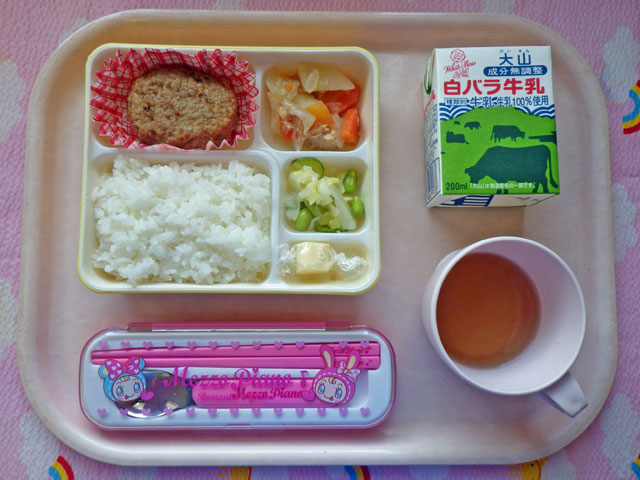 照りっとかがやく★ハンバーグ(2014/11/19) ★ ごはん ◆●照り焼きハンバーグ ★◆●ツナじゃが ● グリーンサラダ ◆ チーズ ※あたたかいご飯はおかわり自由です。 ※牛乳は希望者のみです。 ★熱や力になるもの ◆血や肉になるもの ●体の調子を整えるもの ツイート
