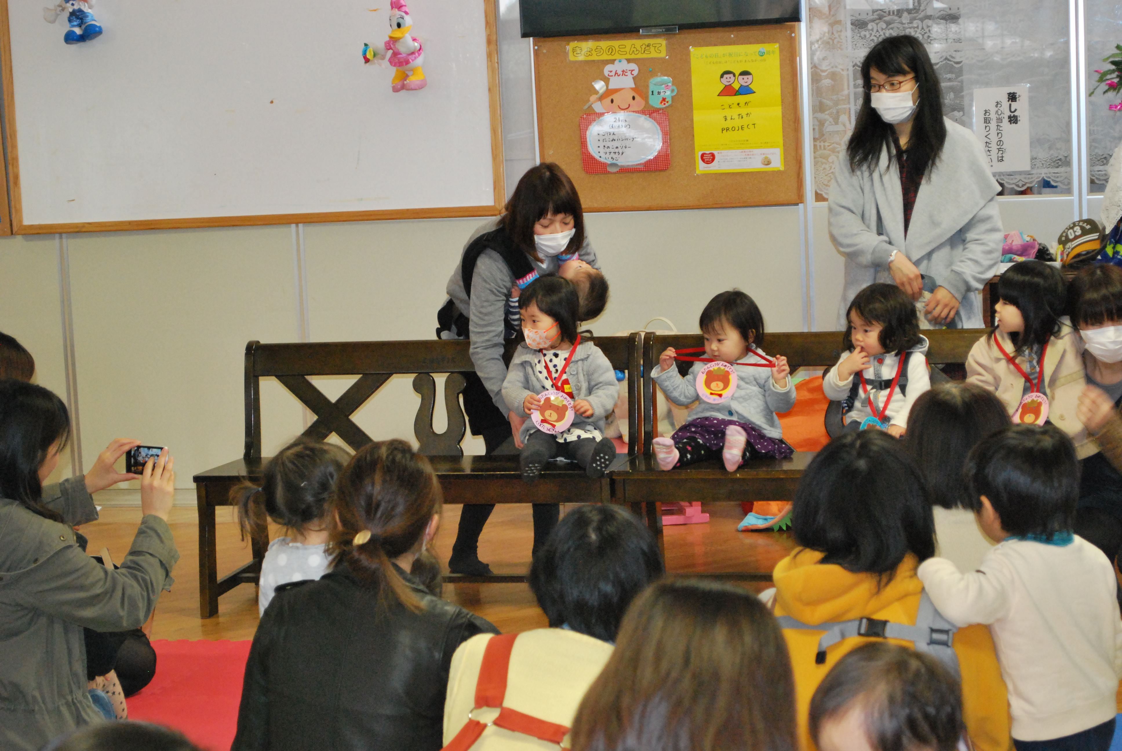 みんなとっても上手に椅子に座って、お花の首飾りをもらいました)^o^(