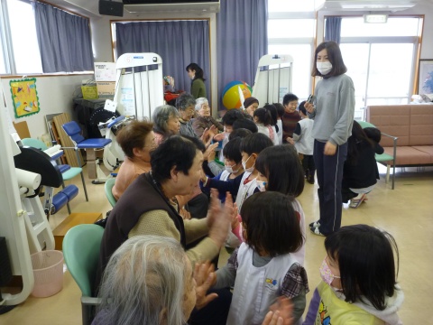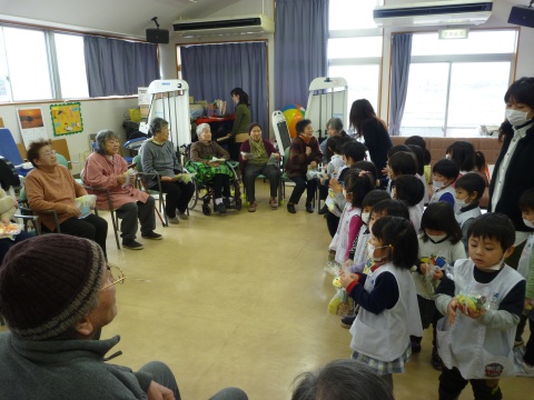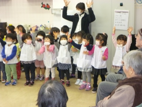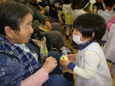 富益クリニックとの交流会(うさぎ組)(2015/01/23) うさぎ組の子どもたちが、富益クリニックのおじいさん・おばあさんたちと交流会をしました。 一緒に歌をうたったり、ふれあいあそびをした後は、プレゼント交換もして、楽しい時間を過ごしました。 ツイート
