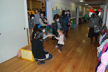 一緒に遊んでくれた、お兄さん、お姉さんと手をタッチしたり、手を振ったりして、ありがとうの気持ちを伝えていました。
