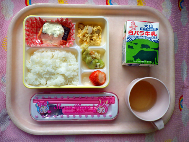 栄養満点!そら豆のサラダ★(2015/03/18) ★ ごはん ◆●鮭のタルタルソース ◆●スクランブルエッグ ● そら豆のサラダ ● いちご ※あたたかいご飯はおかわり自由です。 ※牛乳は希望者のみです。 ★熱や力になるもの ◆血や肉になるもの ●体の調子を整えるもの ツイート