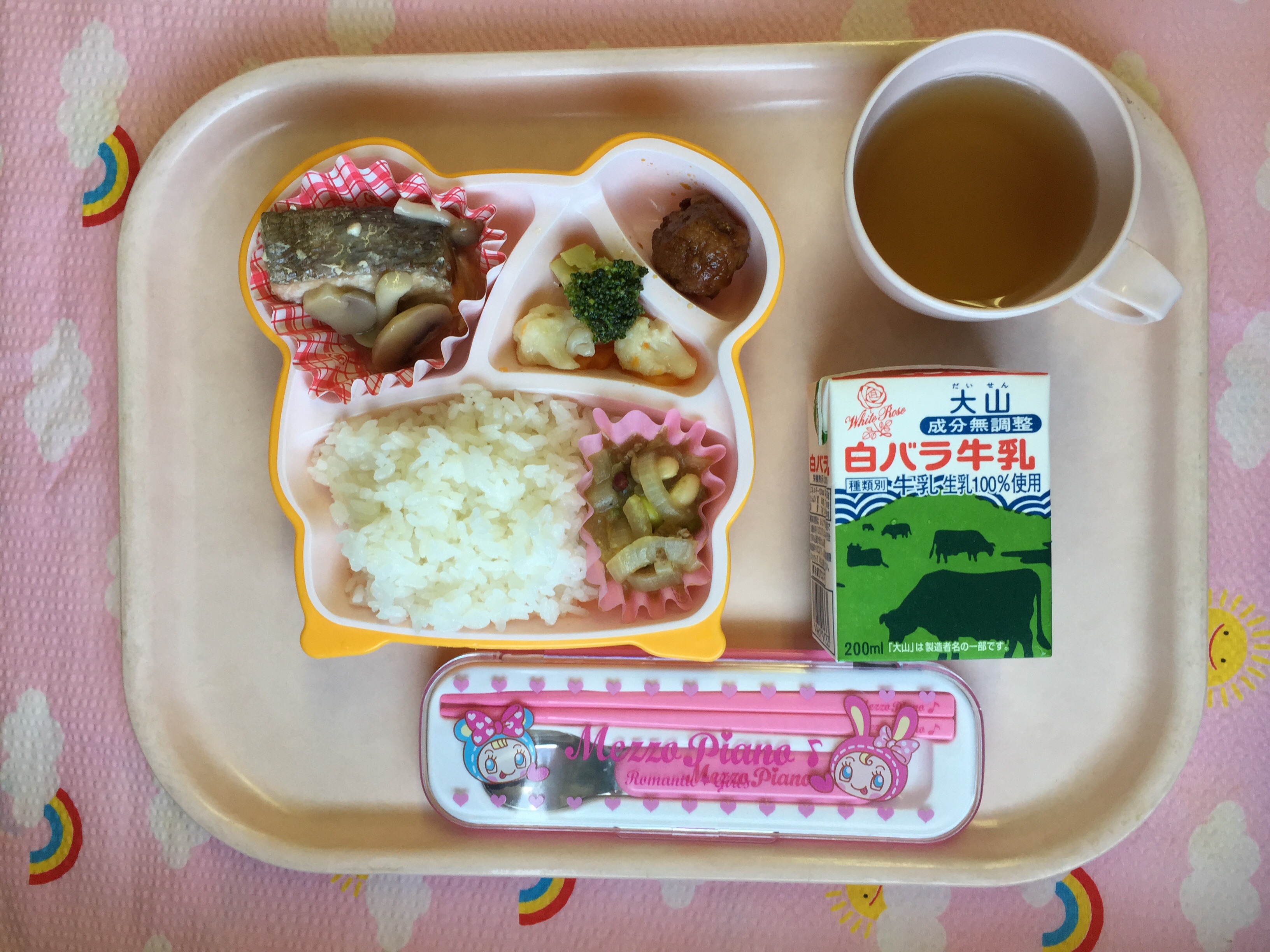 ビタミンたっぷり♪ブロッコリー☆ ★ごはん ◆♣︎鮭の豆乳ソース ◆♣︎野菜のカレー炒め ♣︎ブロッコリーサラダ ◆ミートボール ※あたたかいご飯はおかわり自由です。 ※牛乳は希望者のみです。 ★熱や力になるもの ◆血や肉になるもの ●体の調子を整えるもの ツイート