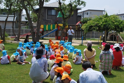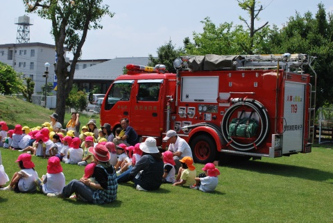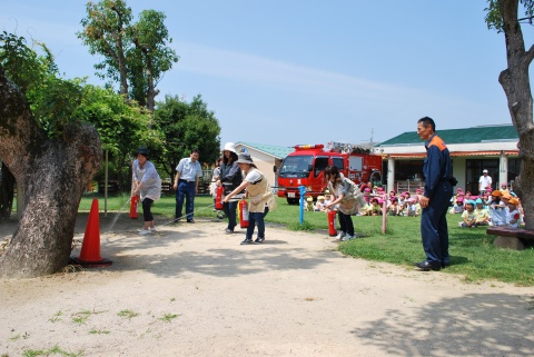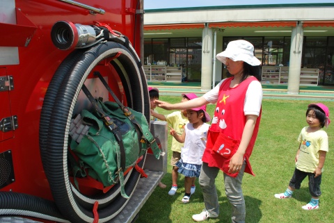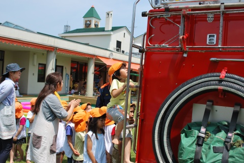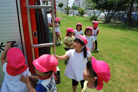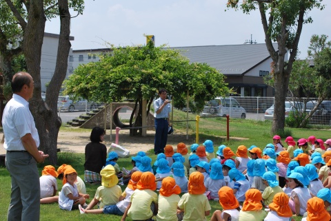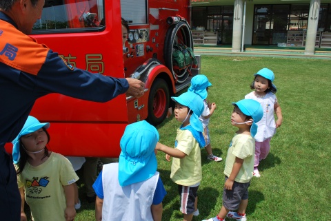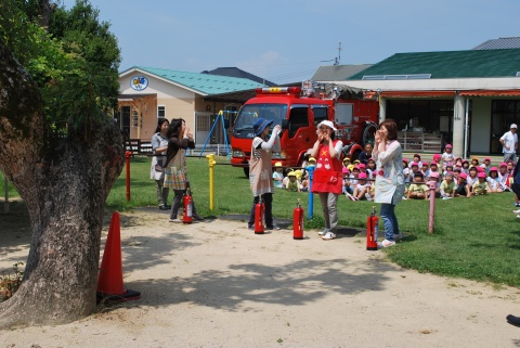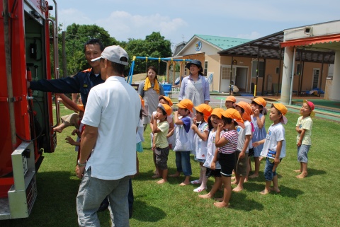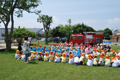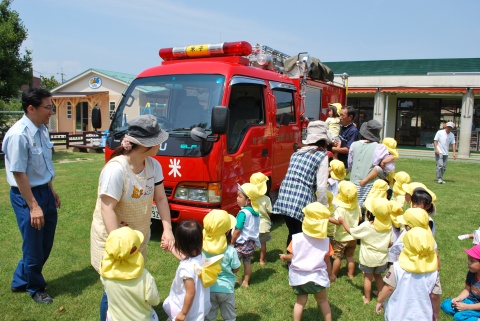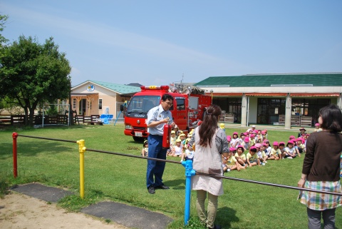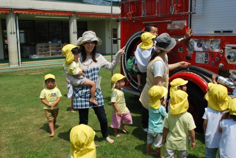 避難訓練(2015/06/25) 火災を想定した避難訓練を行いました。 サイレンを聞いて、先生の指示に従い園庭まで避難できました。 園長先生や消防士さんの話しを聞いたあと、消防士さんの指導で、先生方が消火器を使った訓練を行い、みんなもその様子を見学をしました。 その後、消防車に乗せてもらったり、説明を聞いたりして、楽しいひとときを過ごしました。 ツイート