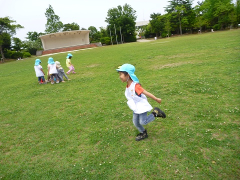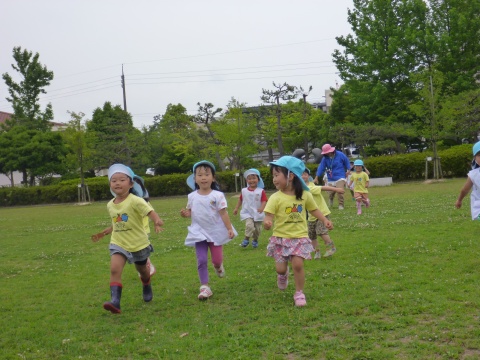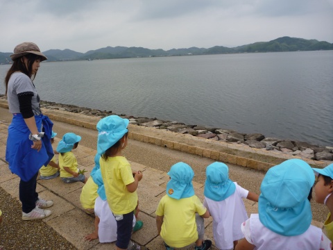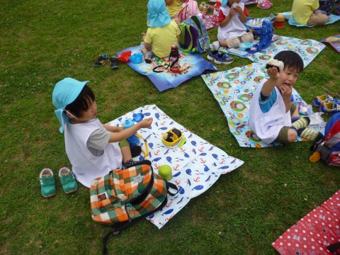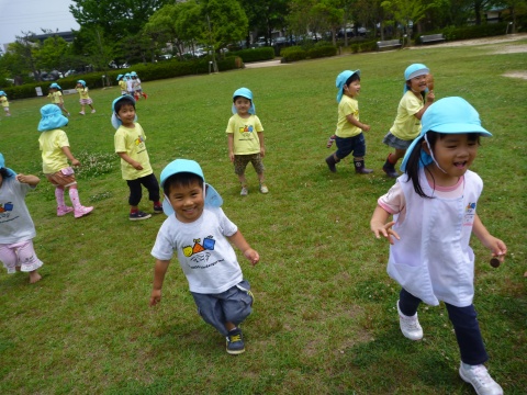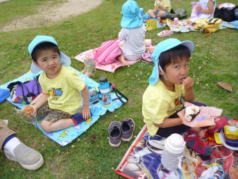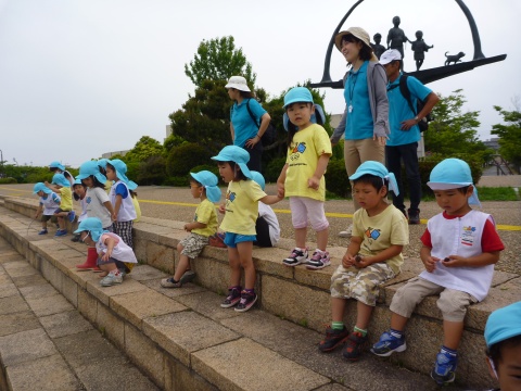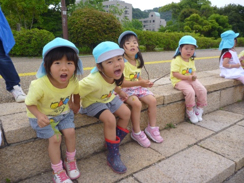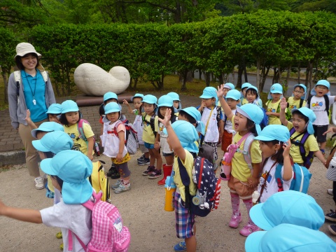 年少組の子どもたちが、バスにのって湊山公園に遠足に行きました。