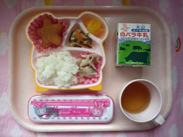 明日は七夕☆星のコロッケだよ♪(2015/07/06) ★ ごはん ★ 星のコロッケ ◆●豚肉の生姜炒め ◆●キャベツの塩昆布和え ★ 夏みかん缶 ※あたたかいご飯はおかわり自由です。 ※牛乳は希望者のみです。 ★熱や力になるもの ◆血や肉になるもの ●体の調子を整えるもの ツイート