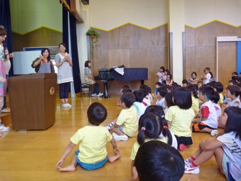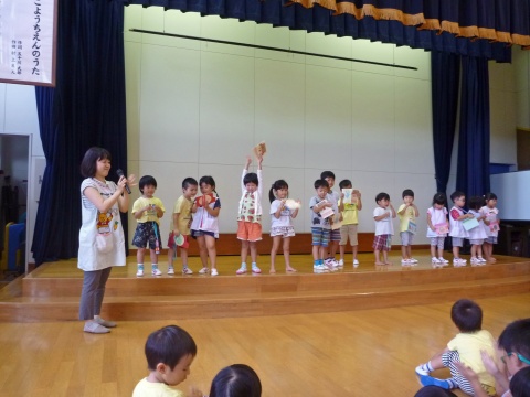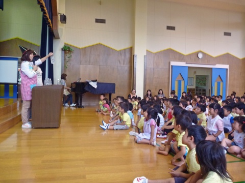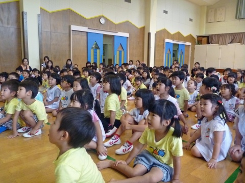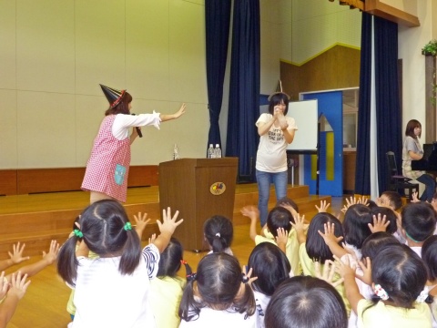 今月の誕生会は、先生のお楽しみショーを見て楽しみましたよ。