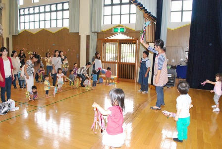 わくわくタイムでは、親子でふれあいあそびをしたり、「このゆびとまれ♪」の曲に合わせて、ひらひらキラキラを持って、踊ったりして楽しみました(*^_^*)