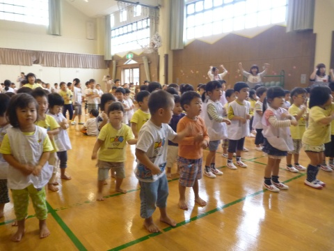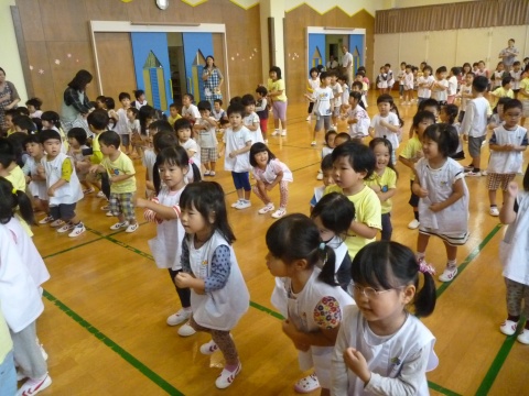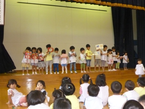 今月の誕生会は、みんなで手遊びをして遊んだり、スライドを観たりして楽しみました。