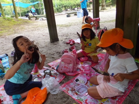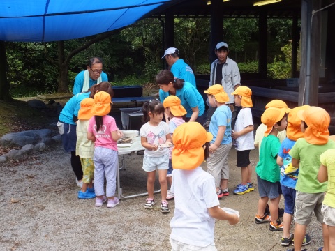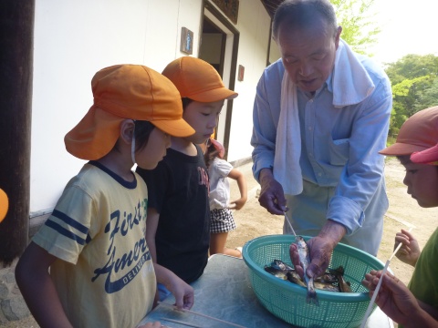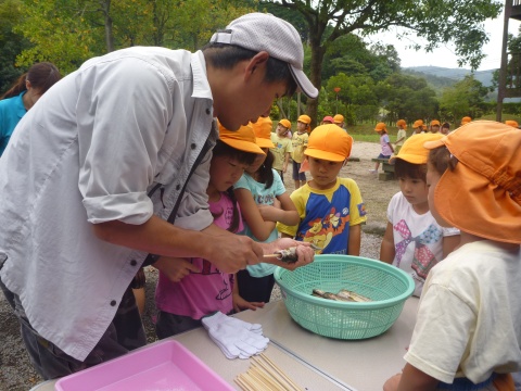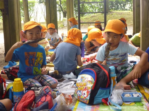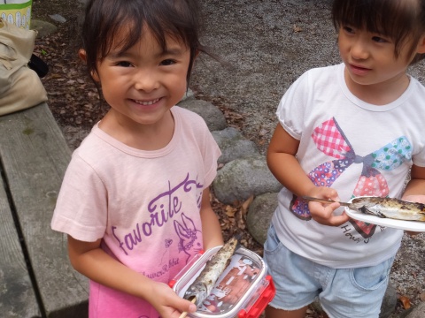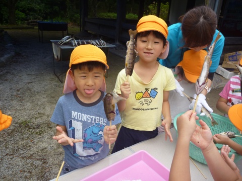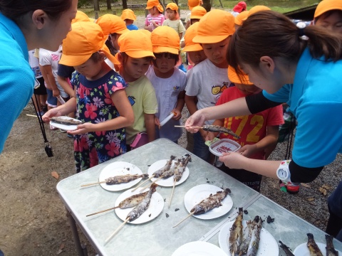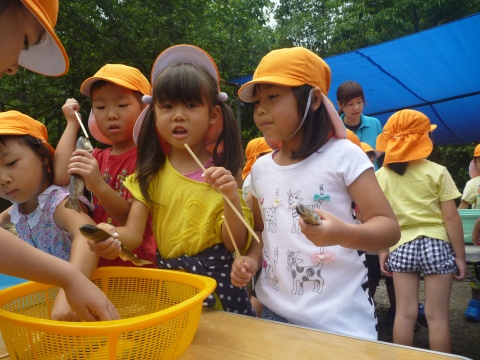 中には、頭からしっぽまで全部食べて、串だけにした子どももいました。初めての体験はきっと子どもたちの良い思い出になったと思います。