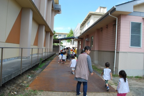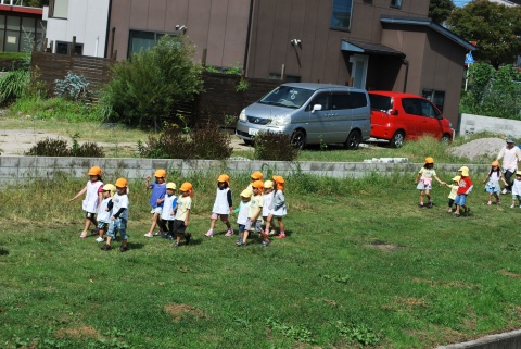 地震が起きた際に、先生の指示で靴を履いた後、園庭まで避難しました。