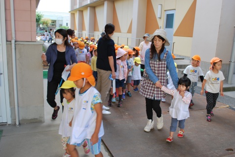 みんな、緊張した様子で整然と並んで歩き、全員無事に避難できました。