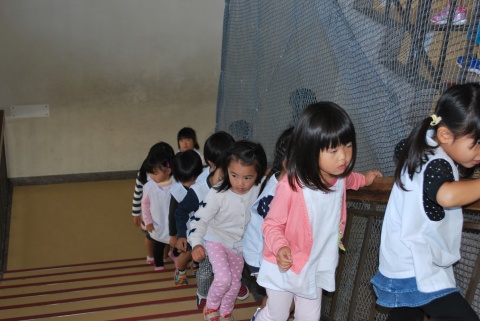 地震発生後、津波警報が発令されたとの想定で、加茂小学校の3階まで避難する訓練でした。