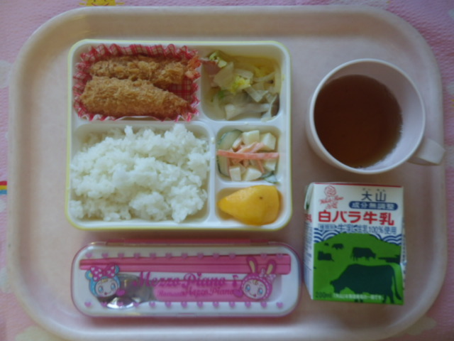 エビフライ兄弟の登場だ☆ ★ごはん ◆エビフライ ◆●白菜ベーコン煮 ★●ポテトサラダ ●柿 ※あたたかいご飯はおかわり自由です。 ※牛乳は希望者のみです。 ★熱や力になるもの ◆血や肉になるもの ●体の調子を整えるもの ツイート