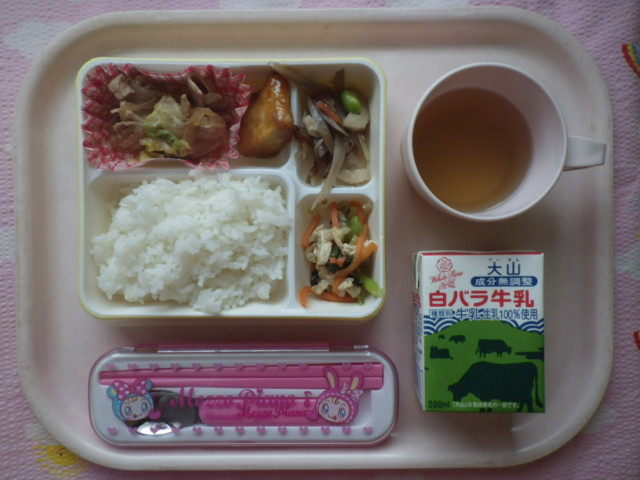 シャキっときんぴら★よく噛んでね! ★ごはん ◆●豚のすき煮 ◆●きんぴらごぼう ◆●煮浸し ★大学芋 ※あたたかいご飯はおかわり自由です。 ※牛乳は希望者のみです。 ★熱や力になるもの ◆血や肉になるもの ●体の調子を整えるもの ツイート