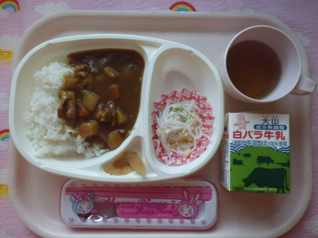 心も体もあったか!ポークカレー★ ★ごはん ★◆●ポークカレー ◆●チキンサラダ ●福神漬け ※あたたかいご飯はおかわり自由です。 ※牛乳は希望者のみです。 ★熱や力になるもの ◆血や肉になるもの ●体の調子を整えるもの ツイート