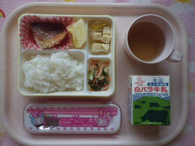どんな野菜にも合うね!チャンプルー ★ごはん ◆赤魚のチリソース ◆●豆腐チャンプルー ●ナムル ●りんご ※あたたかいご飯はおかわり自由です。 ※牛乳は希望者のみです。 ★熱や力になるもの ◆血や肉になるもの ●体の調子を整えるもの ツイート