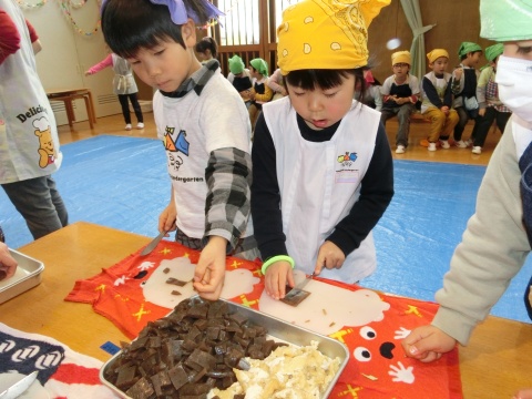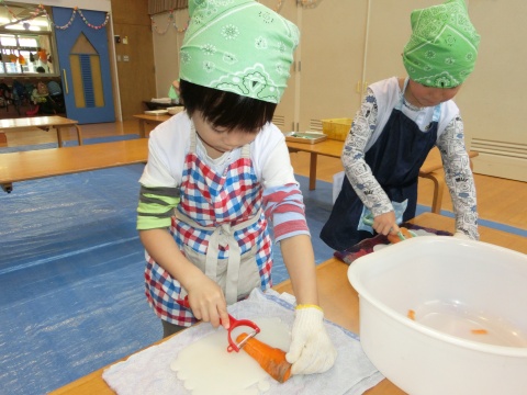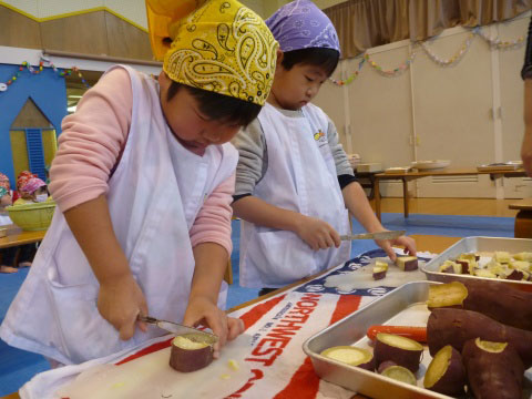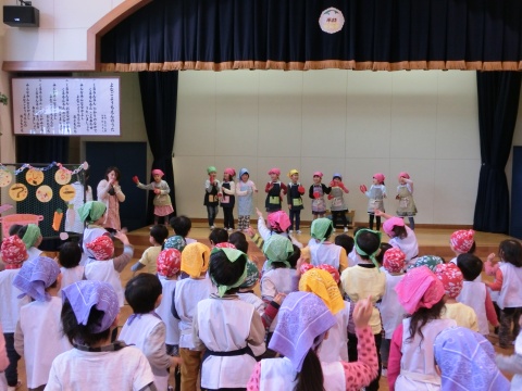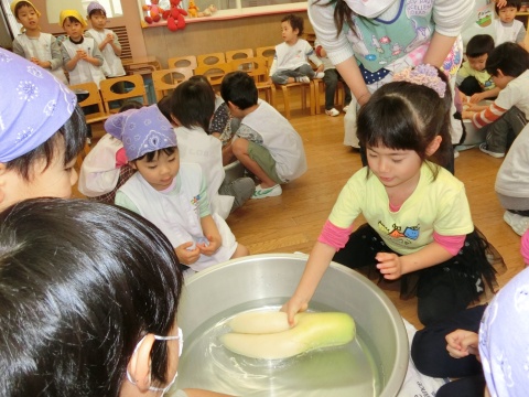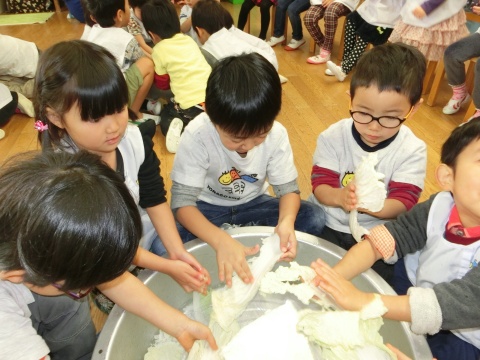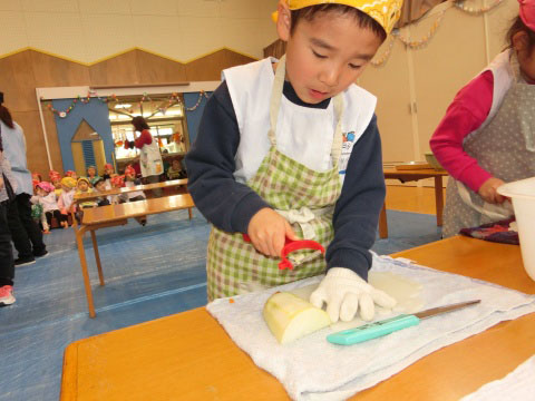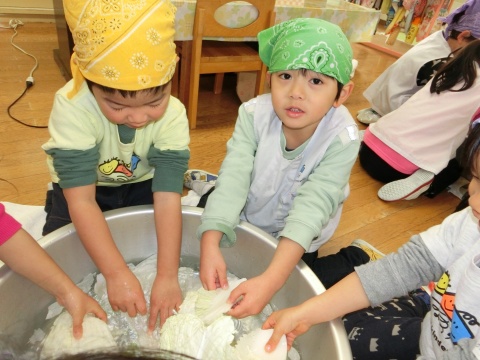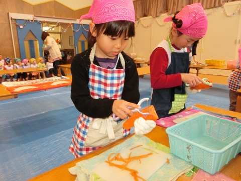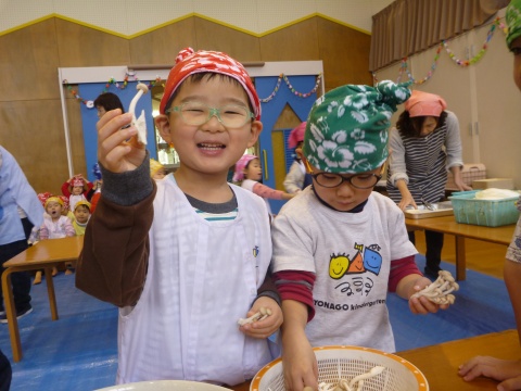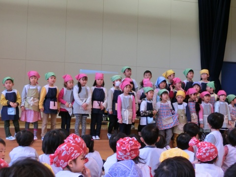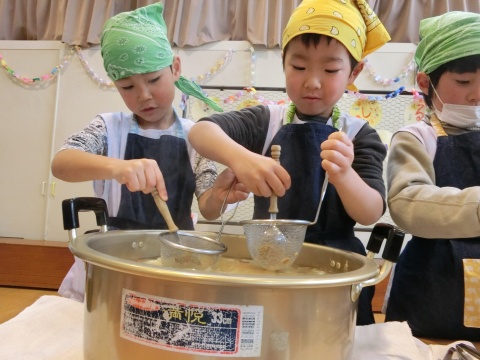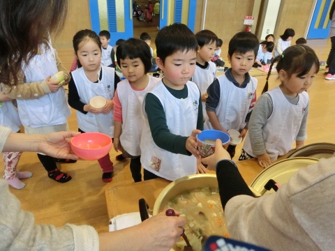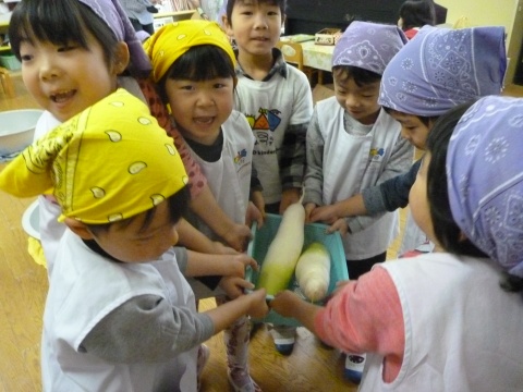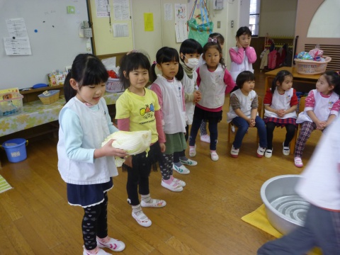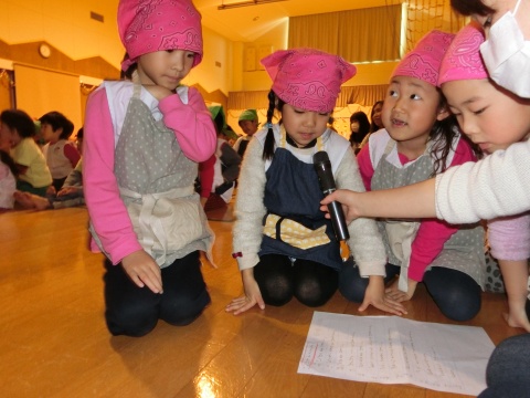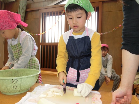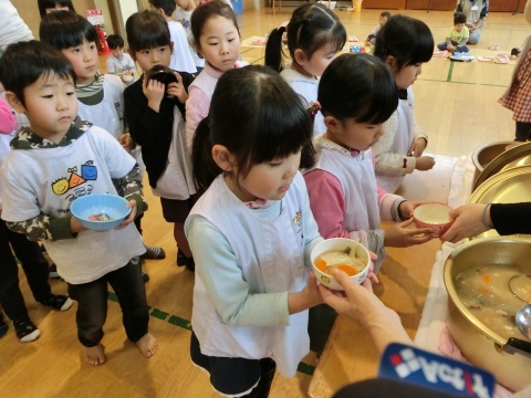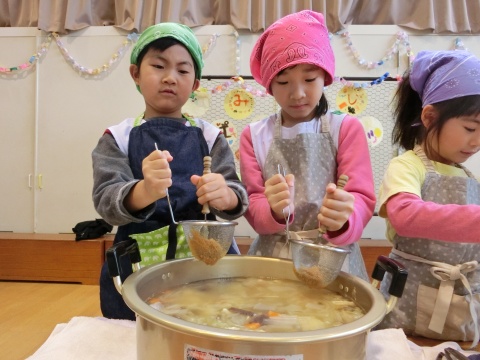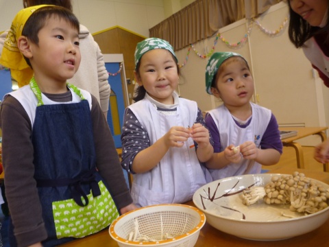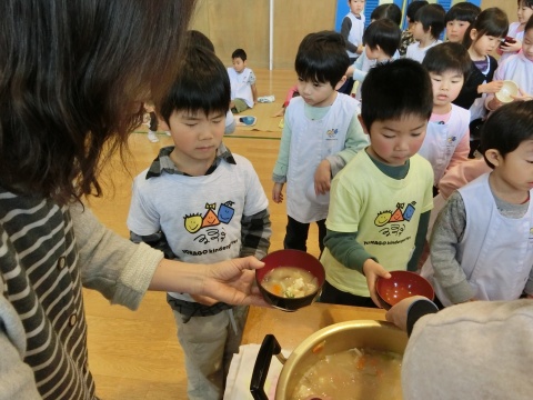 みそ汁パーテイー(ほし・すみれ・りす・ひよこ組)(2016/01/21) ほし・すみれ・りす・ひよこ組の子どもたちが、みそ汁パーティーをしました。 園の菜園で採れた野菜も使って、みんなで仕事を分担して、作りました。 野菜を洗ったり切ったりした後、煮込んでいる時間を利用して楽しい出し物をしました。 ほし組の子どもたちがステージに立ち、みんなで手遊びをしたり、スライドを読んだりしてくれました。 出来上がったみそ汁はみんなで一緒に食べました。とっても美味しかったですよ。 ツイート