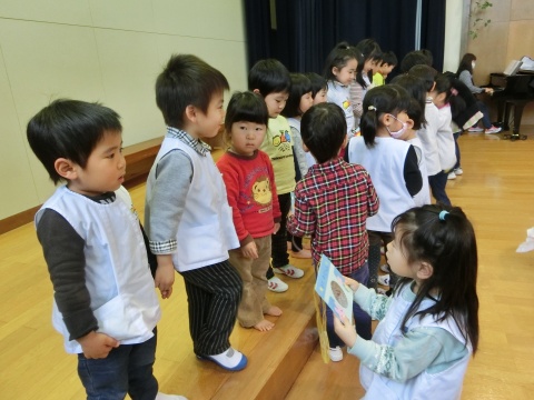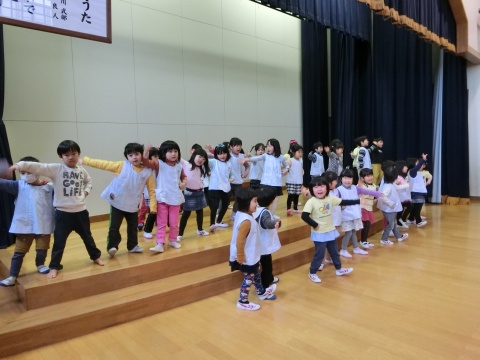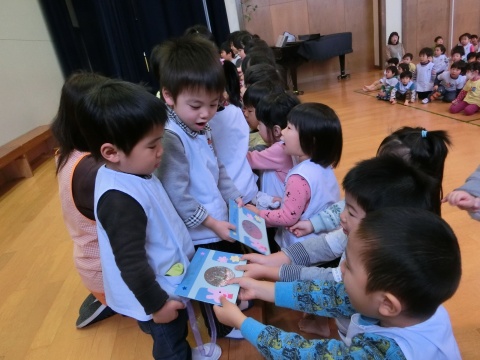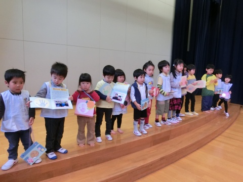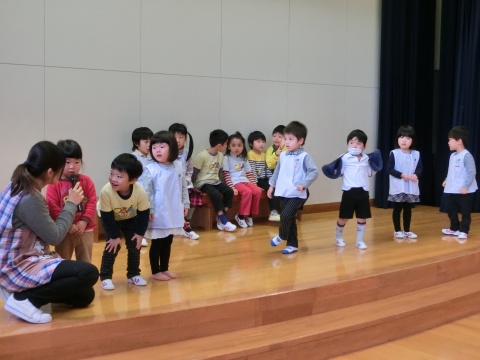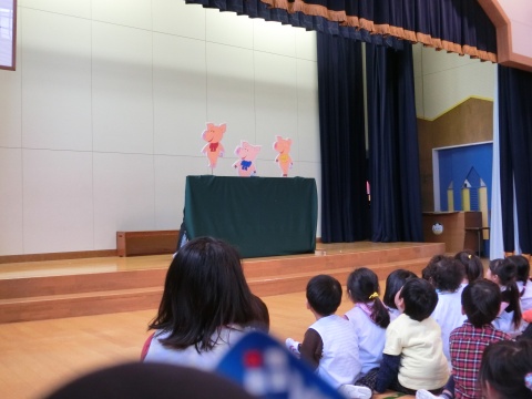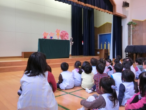 今月の誕生会は、みんなで手遊びをしたり、先生方のペープサートを観たりして楽しみましたよ。