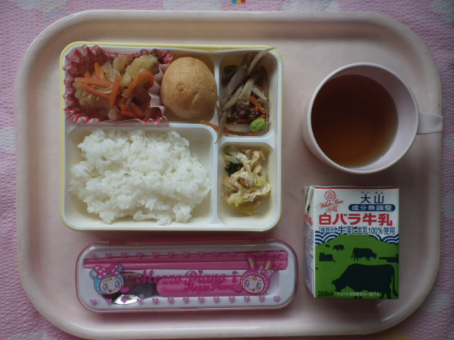 甘酸っぱ~い☆南蛮漬け ★ごはん ◆●アジの南蛮漬け ◆●きんぴらごぼう ◆●煮浸し ★シュークリーム ※あたたかいご飯はおかわり自由です。 ※牛乳は希望者のみです。 ★熱や力になるもの ◆血や肉になるもの ●体の調子を整えるもの ツイート