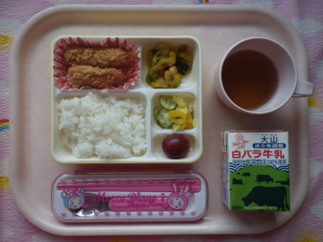 みんな大好き☆エビフライ☆ ★ごはん ◆エビフライ ◆●コンソメ煮 ●グリーンサラダ ●ぶどう ※あたたかいご飯はおかわり自由です。 ※牛乳は希望者のみです。 ★熱や力になるもの ◆血や肉になるもの ●体の調子を整えるもの ツイート