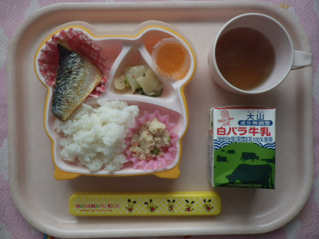 生姜でさっぱりのお魚さん! ★ごはん ◆サバの生姜煮 ◆●卯の花 ●大根サラダ ★ゼリー ※あたたかいご飯はおかわり自由です。 ※牛乳は希望者のみです。 ★熱や力になるもの ◆血や肉になるもの ●体の調子を整えるもの ツイート