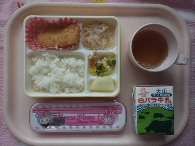 メロンのおいしい季節です! ★ごはん ◆イカフライ ★●春雨ソテー ●ブロッコリーサラダ ●メロン ※あたたかいご飯はおかわり自由です。 ※牛乳は希望者のみです。 ★熱や力になるもの ◆血や肉になるもの ●体の調子を整えるもの ツイート