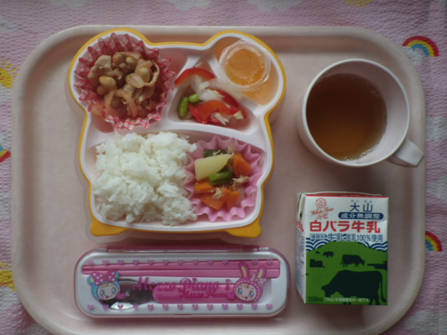 豚肉x大豆で栄養満点! ★ごはん ◆●ポークビーンズ ★◆●ツナじゃが ●フレンチサラダ ★ゼリー ※あたたかいご飯はおかわり自由です。 ※牛乳は希望者のみです。 ★熱や力になるもの ◆血や肉になるもの ●体の調子を整えるもの ツイート