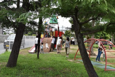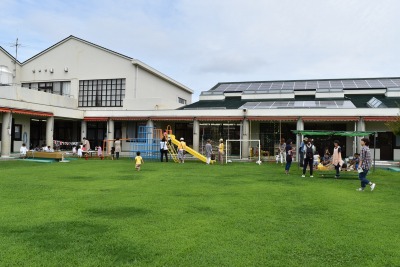 「今日は、雨が降りそう~」と心配していた天気も、みんなの元気パワーが吹き飛ばしてくれたようで、さわやかな風が吹く、外あそび日和になりました!