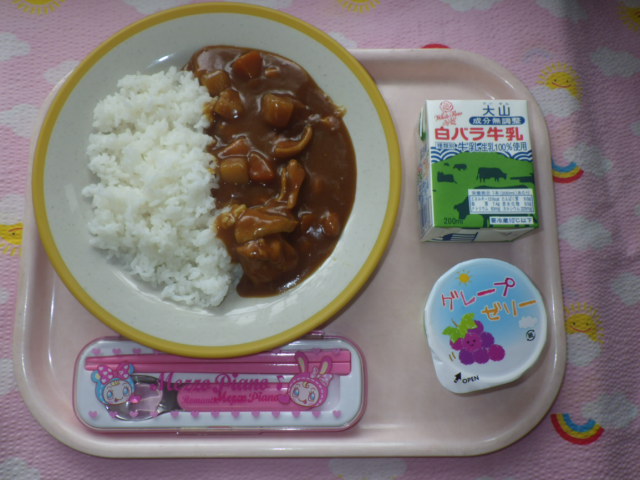 みんな大好き★チキンカレー(2016/9/26) ★ ごはん ★◆●チキンカレー ★ ゼリー ※あたたかいご飯・カレーはおかわり自由です。 ※牛乳は希望者のみです。 ★熱や力になるもの ◆血や肉になるもの ●体の調子を整えるもの ツイート