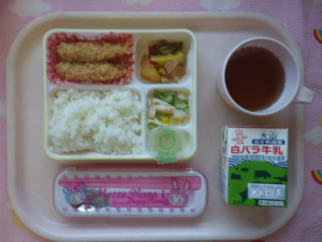 サクサク楽しい!エビフライ★ ★ごはん ◆エビフライ ★●野菜のトマト煮 ◆●大根サラダ ★ゼリー ※あたたかいご飯・カレーはおかわり自由です。 ※牛乳は希望者のみです。 ★熱や力になるもの ◆血や肉になるもの ●体の調子を整えるもの ツイート